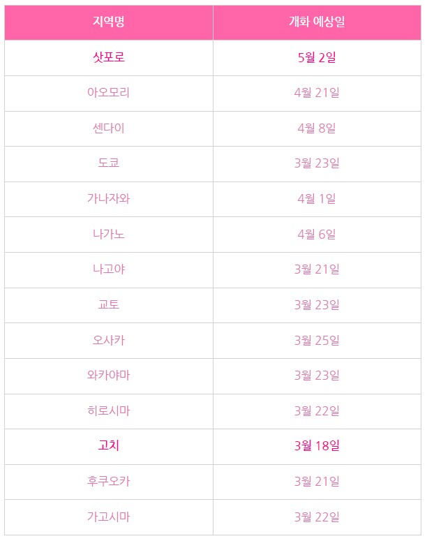 5. 2024년 일본 벚꽃 예상 개화 시기