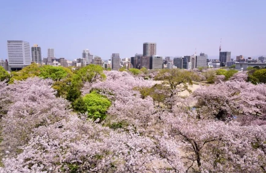 약 1000여 그루의 벚꽃 나무가 만발하는 마이즈루 공원의 후쿠오카 성 벚꽃 축제